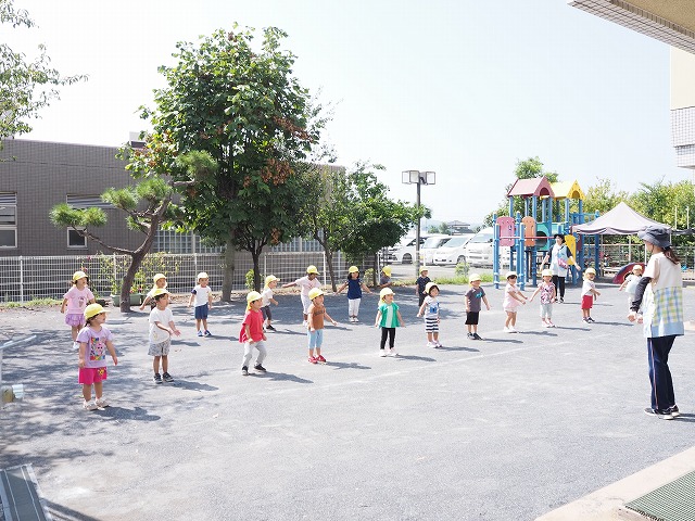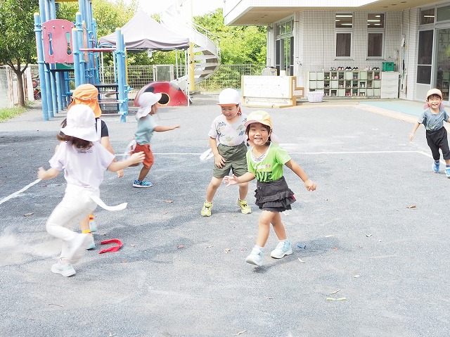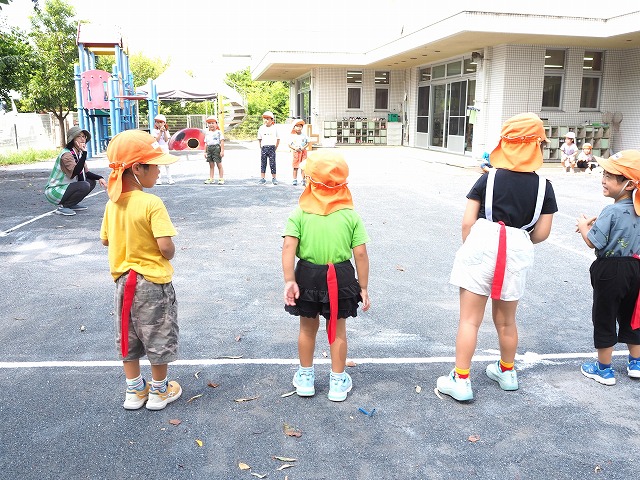 4歳児5歳児の運動会の種目の練習をしていました。しっぽ取り合戦のような競技です。