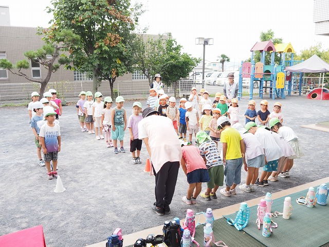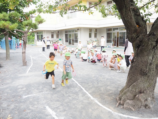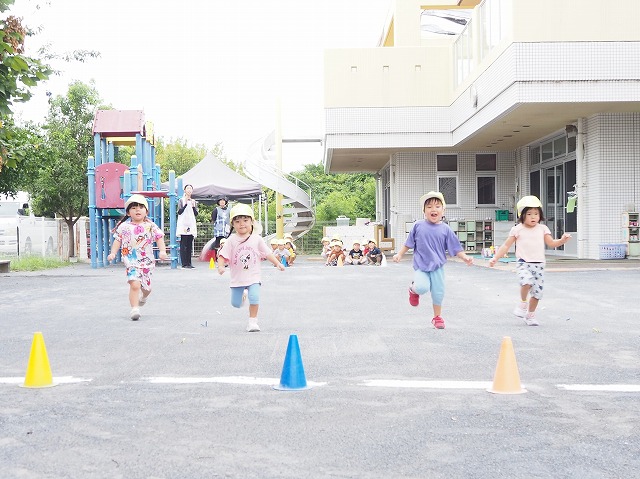 すみれ組ひまわり組の最終種目「紅白リレー」の練習です。