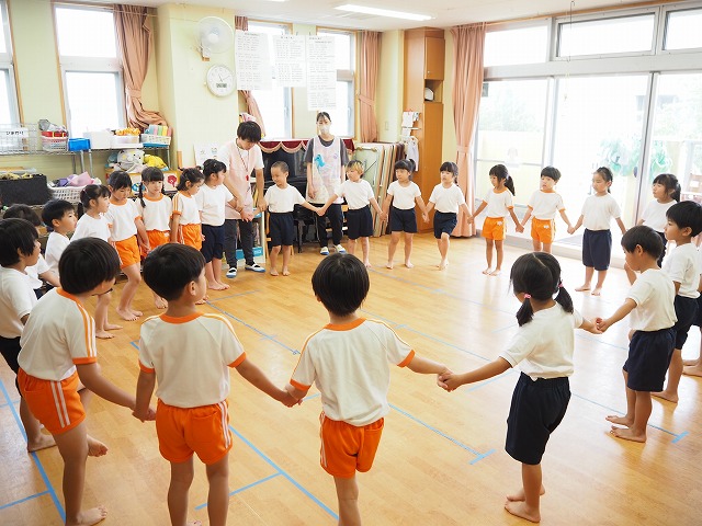 5歳児ひまわり組。組立体操の練習は、演目の終盤の演技になってきました。こどもたちはよく頑張っています。