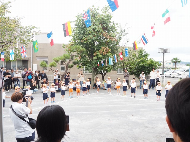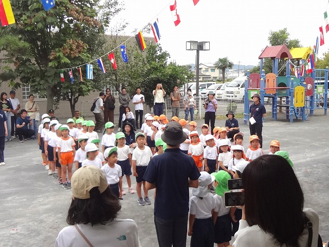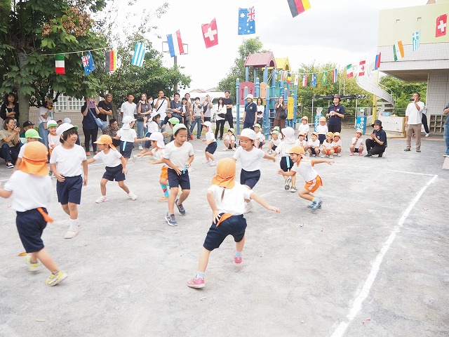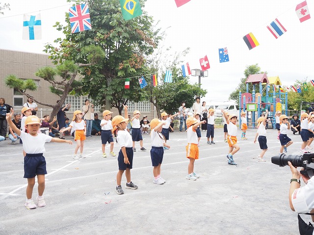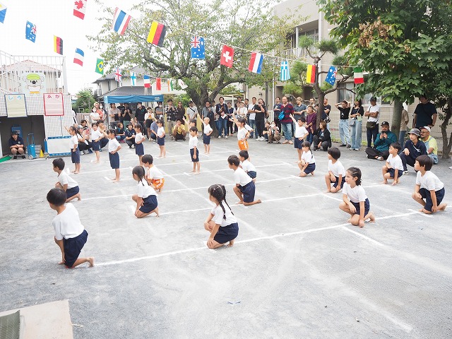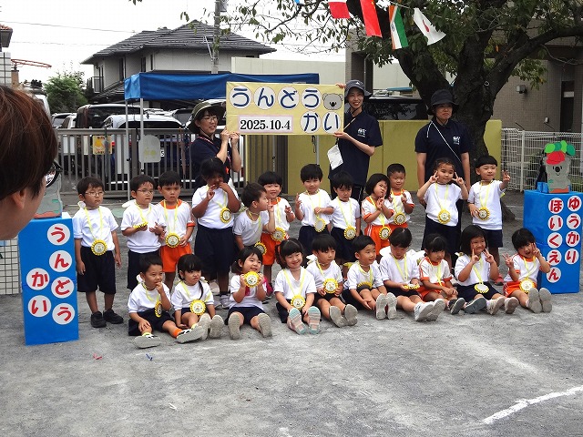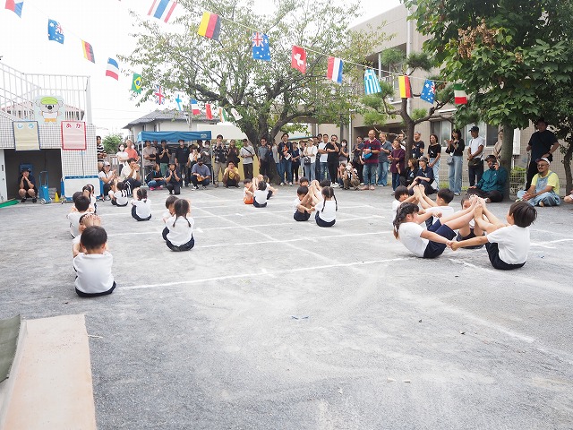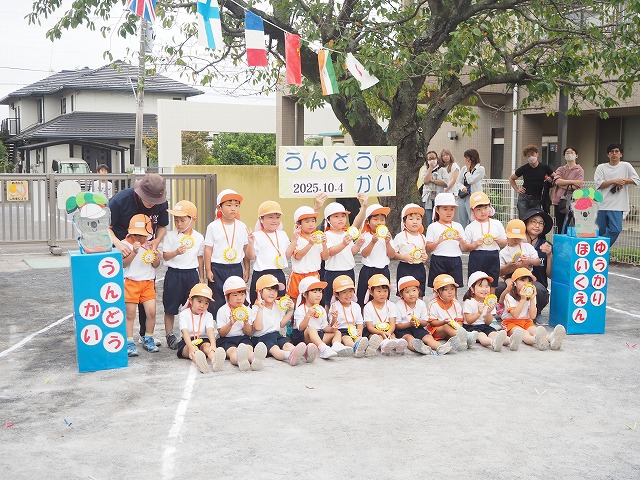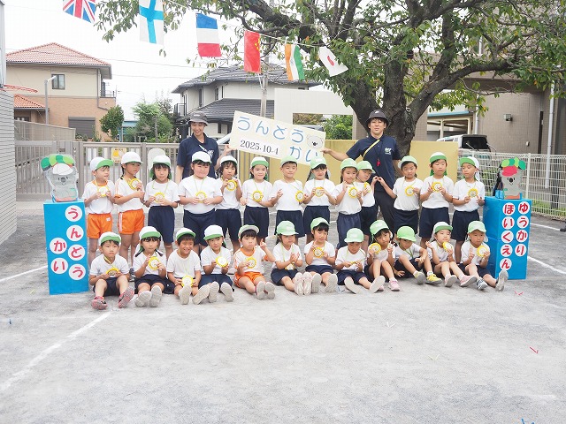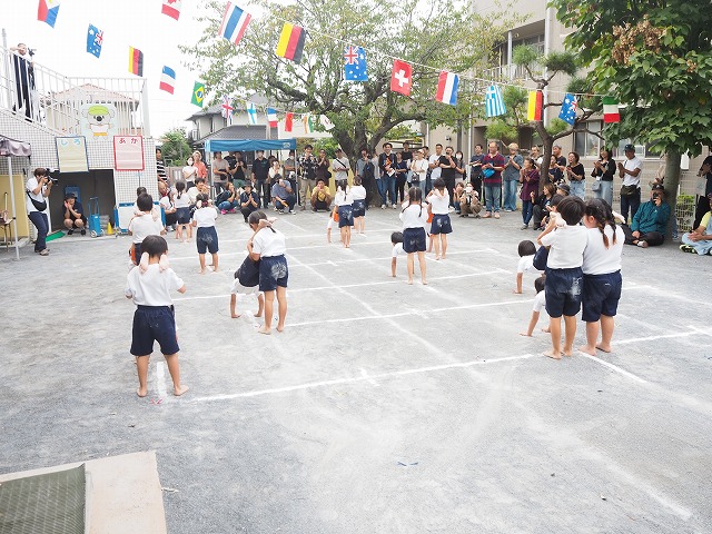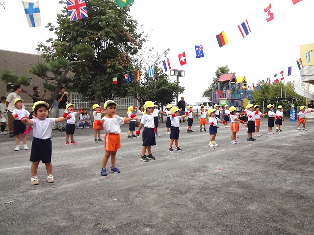 集合写真を撮って、さくら組の運動会は終了です。お遊戯も、玉入れの「チェッコリ」のダンスもよく練習していました。とても上手でした。