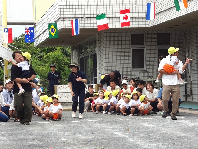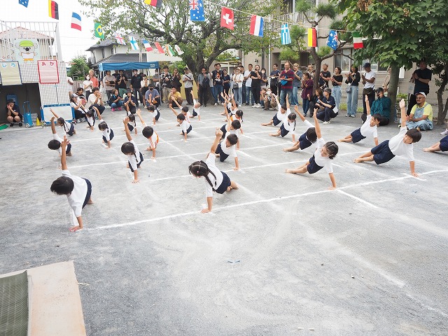 ひまわりから再度一列に戻って、「一本橋」。なんども練習をしてやり遂げました。頑張り通したこどもたちに拍手です。