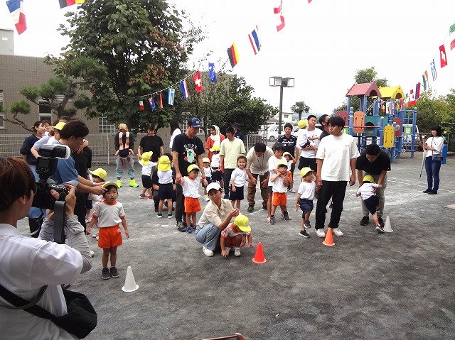 ここからは得点競技です。すみれ組の親子競技「ぐるぐるリレー」