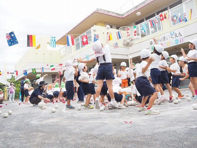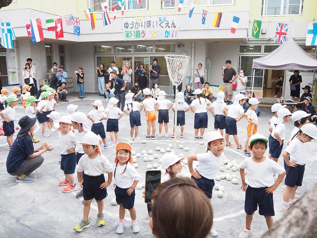 年長児ひまわり組の組立体操の入場。今年はMrs GREEN APPLE のケセラセラの曲でした。