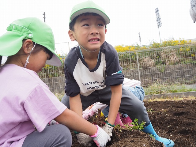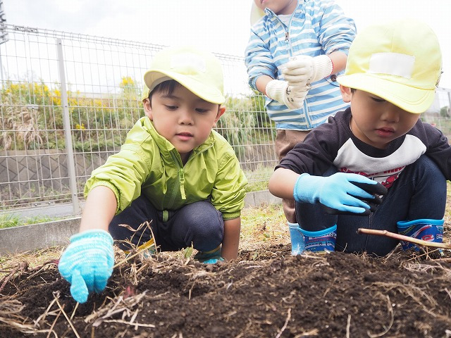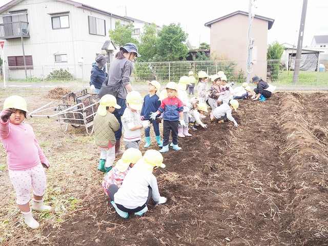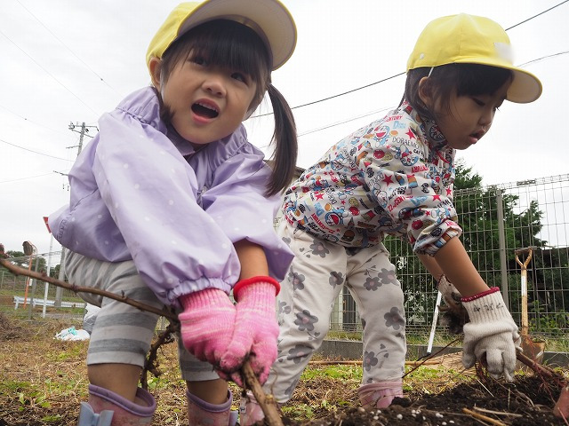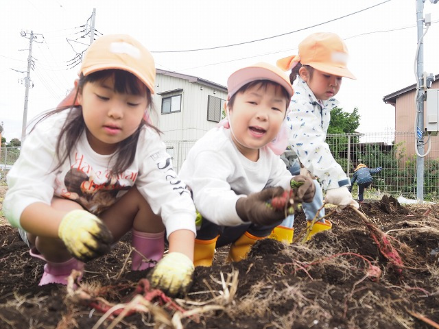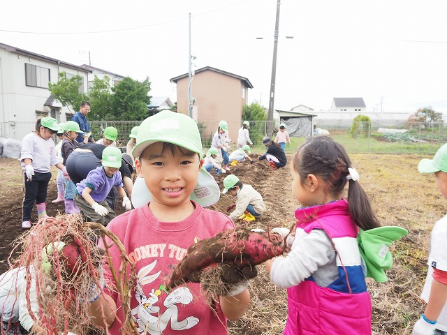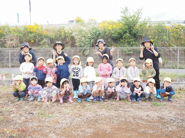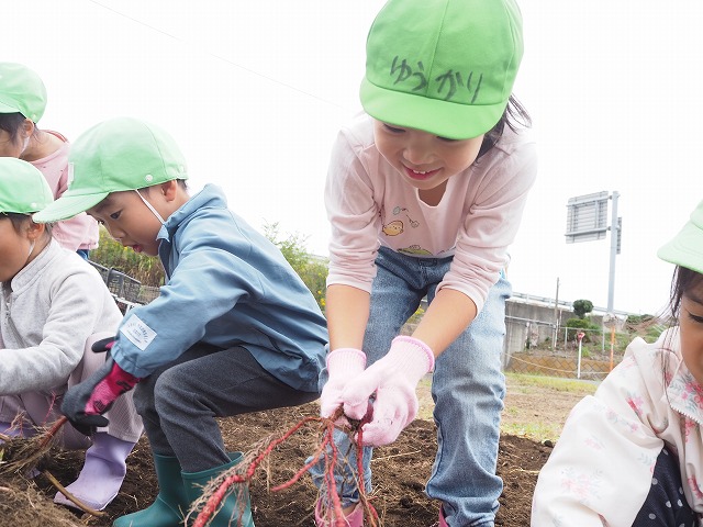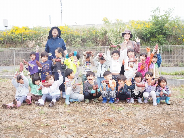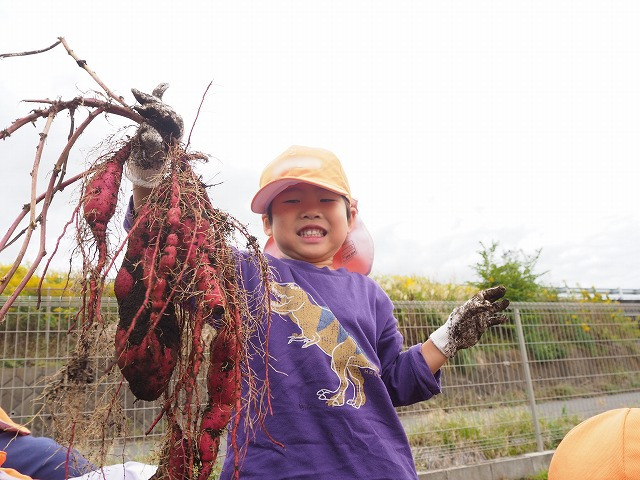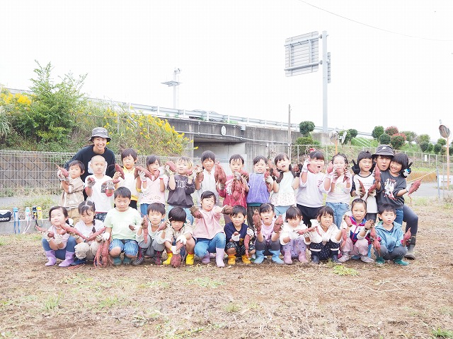 5歳児ひまわり組。保育園生活最後のサツマイモ掘りでした。次の楽しみは「秋のバス遠足」だね。