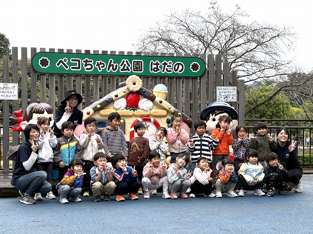 しばらくバスで待機した後、雨がやみ、ペコちゃん公園へ移動しました。