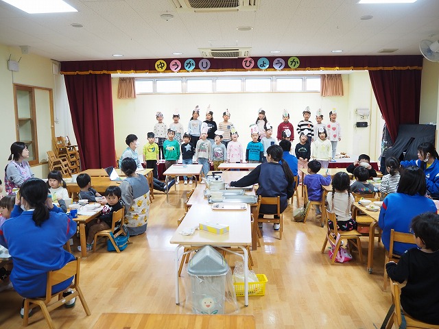 保育園では発表会練習をしていて、中学生たちもこどもたちの練習を観て拍手をしてくれました。