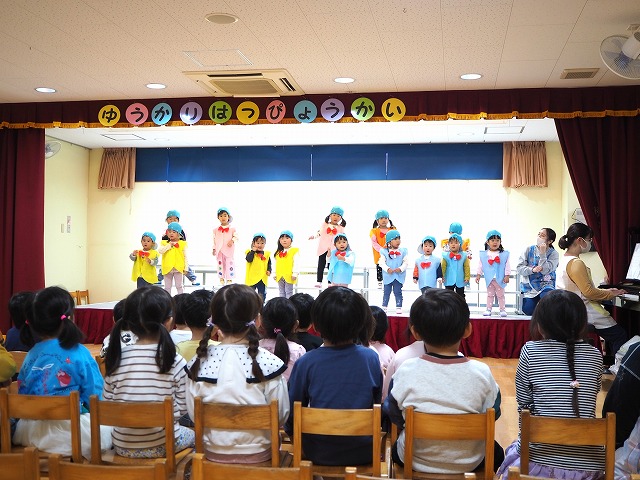 5歳児ひまわり組も本番と同じ衣装を着ていました。