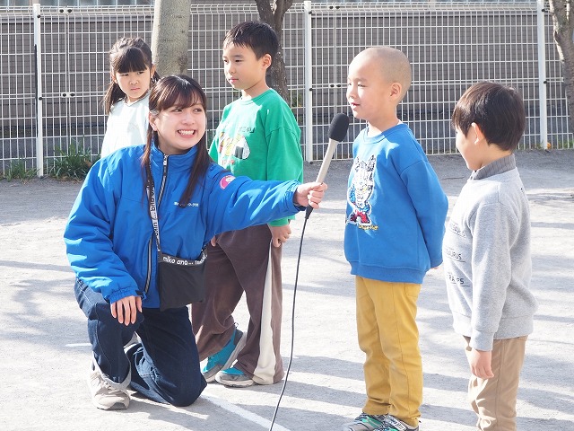 次は、園庭にてインタビューでした。将来の夢を話しました。