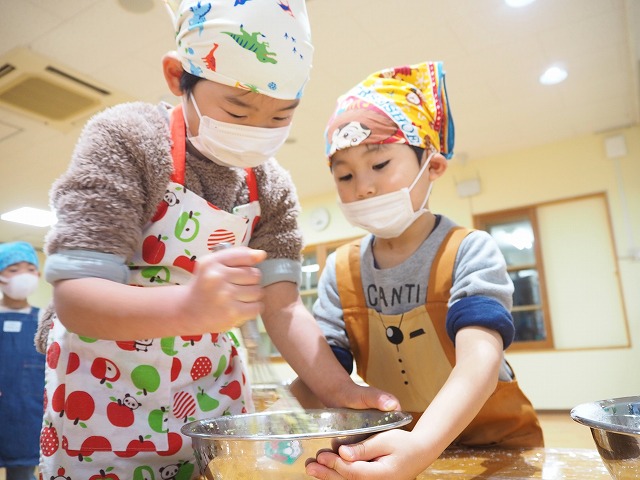 今日は5歳児ひまわり組がクッキー作りをしました。