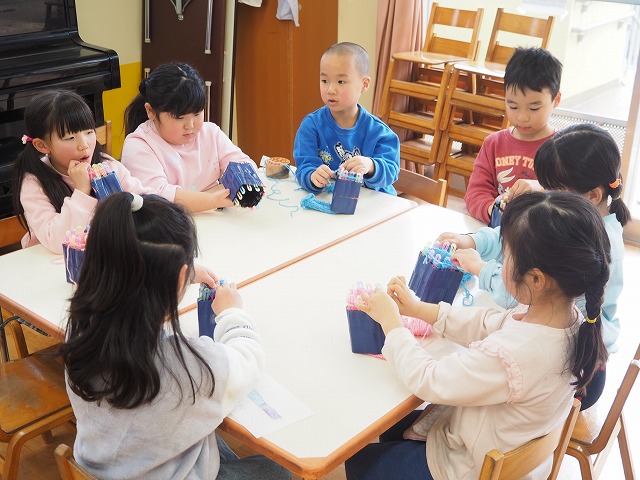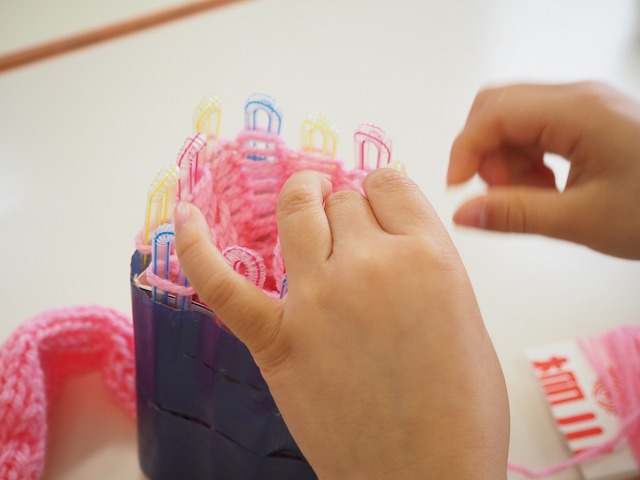 クッキー作りのあと、ひまわり組は手編みのマフラー制作をしていました。