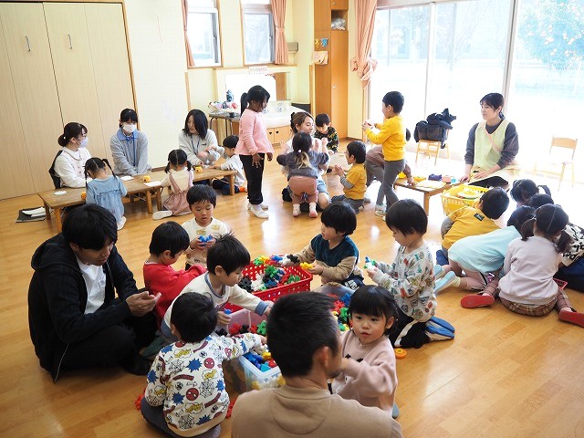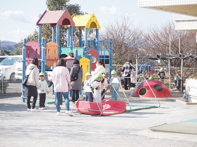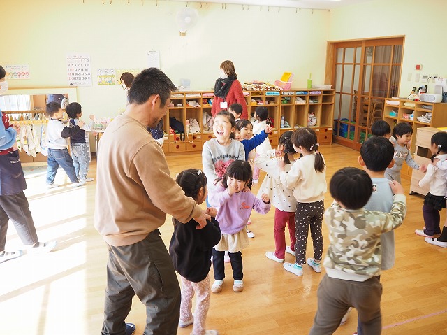 次回の保育参観はこどもたちが進級して6月です。進級まであと2カ月ですね。こどもたちはおともだちとの過ごし方も遊び方も日々変化していきます。クラスの個性豊かなこどもたちが、みんなでそれぞれを認め合い助け合っていくように保育していきます。