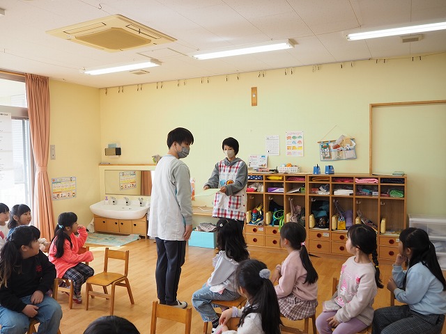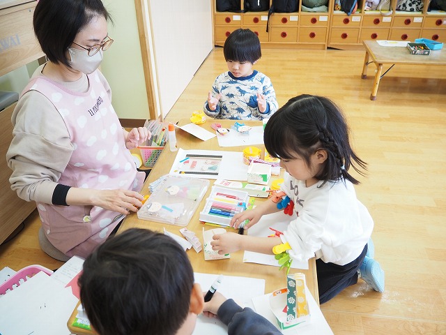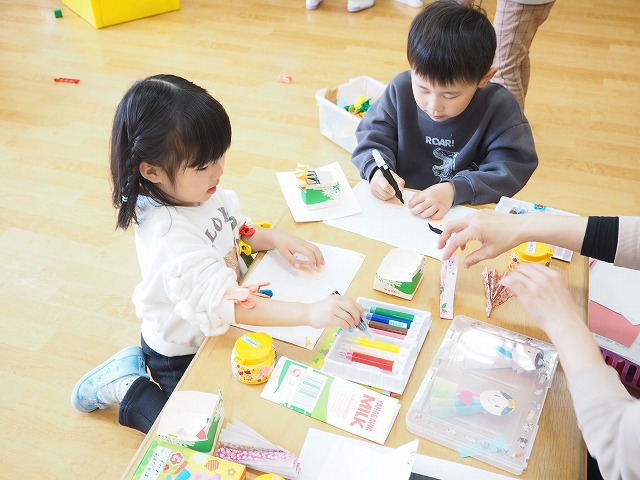 4歳児すみれ組。こちらもお雛様を制作していました。