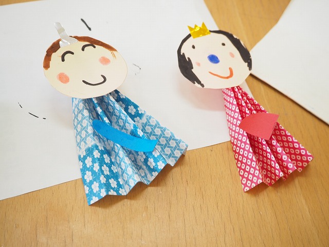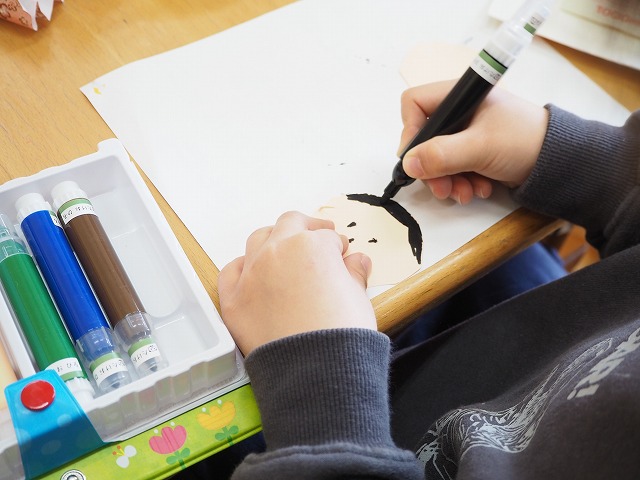 お内裏様とお雛様のお顔をマジックで描いていました。みんなかわいいお顔が描けるんですね。