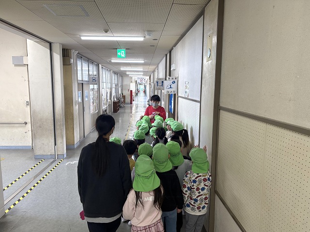 今日は5歳児ひまわり組が岡崎小学校へ行きました。「架け橋交流」の2回目です。
