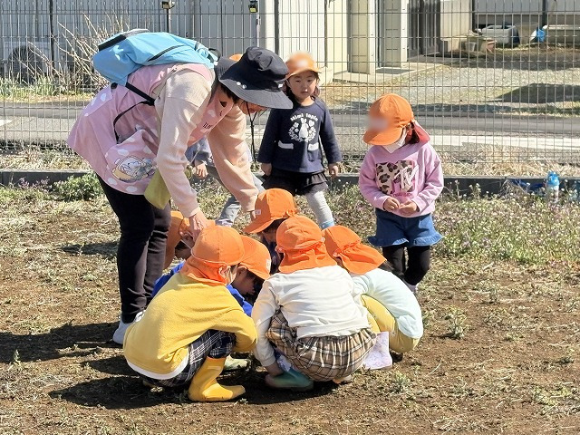 すみれ組も「おおきくなーれ」のパワーを送りました。収穫するときは年長の夏だね。