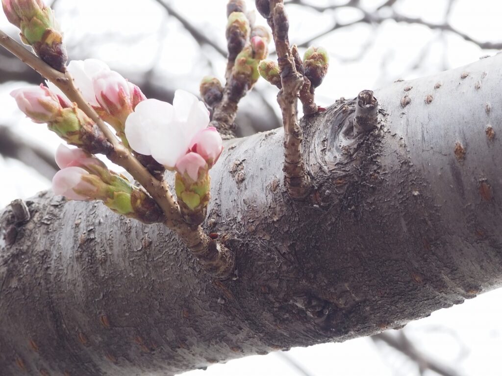 園庭の桜。本日、開花宣言です。