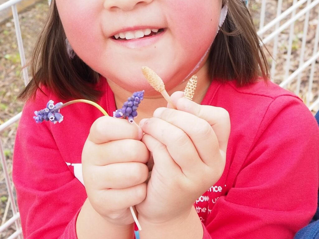 あっ、つくしだ。園庭の小さな春ですね。園庭で遊んでいた子が見せてくれました。